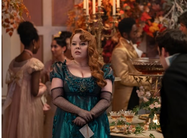 We begin at the start of another debutante season. To summarize, Penelope (Pen) is still the sad lurking wall flower—extra sad, because Eloise is suddenly besties with mean-girl Cressida. Colin has returned from his travels as an insufferable flirt who hits on any woman not related to him (except for Pen of course) and needs to show off his abs while changing in a carriage–so we can all be reminded that he’s hot now and the romantic lead of the season. Francesca I-have-no-fucks-to-give Bridgerton is going to make her debut and head into the marriage mart, even though all she wants is to be left alone to play the pianoforte. The Featheringtons remain in a precarious financial situation, which will require one of the Featherington girls to give birth to a male heir posthaste before Portia’s subterfuge with financial documents is discovered. Kate and Anthony are having all the sex, all the time, and that’s all they want to do. They even decide that it’s better if Lady Violet stays and continues with viscountess duties just so they have more time to bang. And because we don’t have enough story plots going on at the same time, Naomi and Will Mondrich’s son inherits a title, and they move to a large estate. It’s not at all like Shonda Rhymes is trying to drive home the point that male heirs inherit everything.